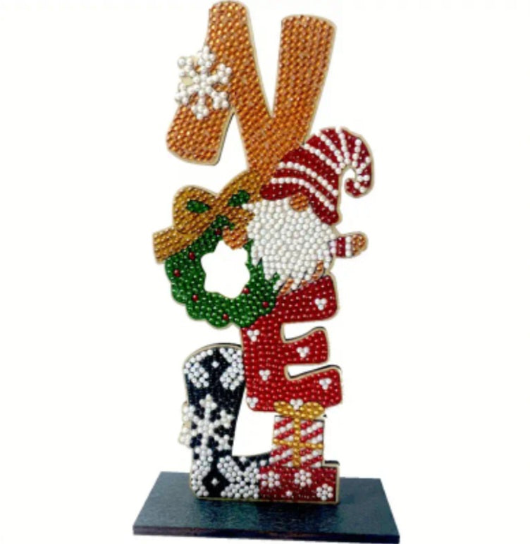 Chaque lettre est finement ornée de strass colorés aux motifs festifs : bonnet de Père Noël, couronne de houx, flocon de neige et chaussette hivernale.